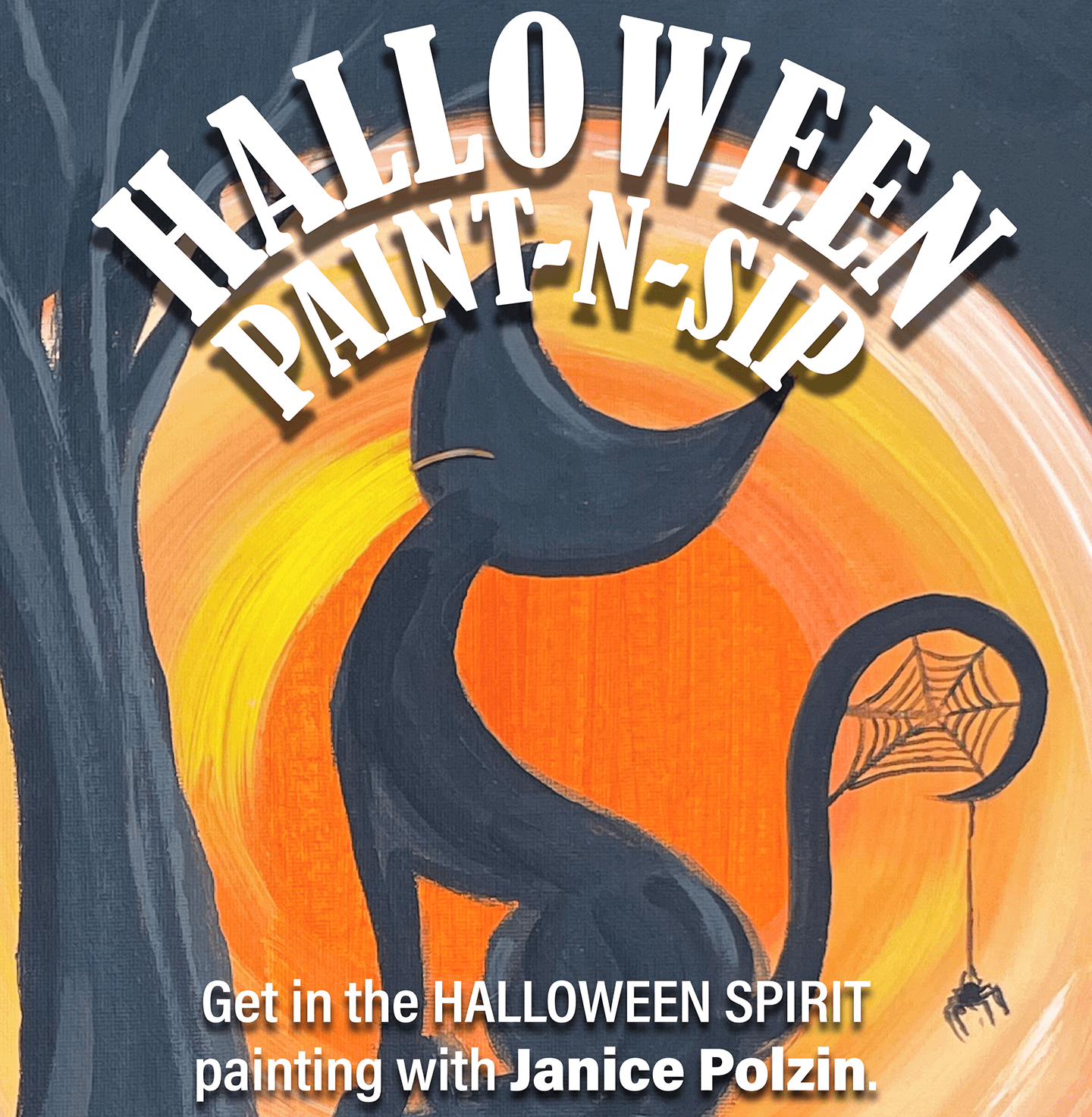 Get in the HALLOWEEN SPIRIT painting with Janice Polzin. This is a family friendly event, for ages 10 and up. Paint along with Janice while you enjoy some spooky snacks and drinks. All painting supplies provided. No experience needed, perfect for beginners.